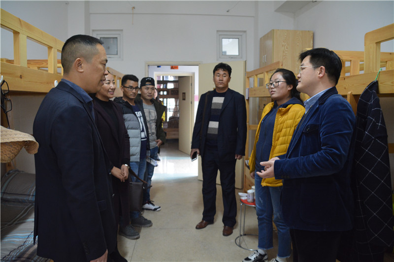 在学校领导的陪同下,钟秋明一行参观了挂职老师的办公室和宿舍,考察了我校教室和教师办公室,全方位地了解了四位老师在校的工作与生活环境。