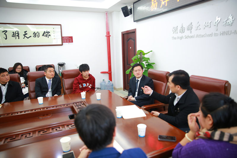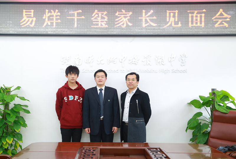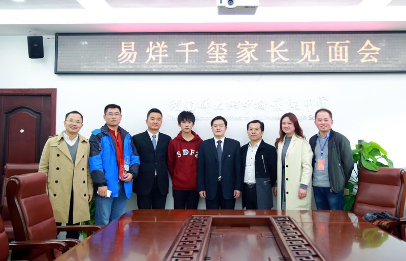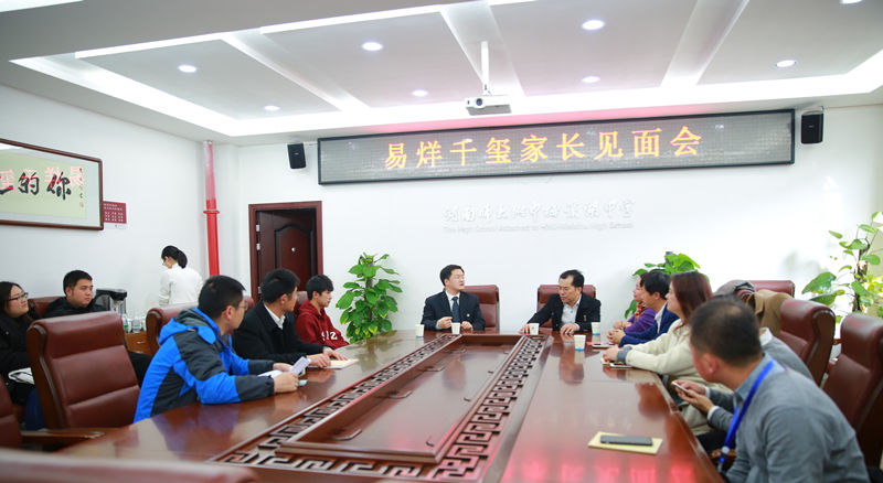 12月16日,易烊千玺献唱我校第三届校园文化艺术节,演出后,校长彭荣宏与易烊千玺的父亲举行了家长见面会,就易烊千玺的培养和发展进行了深入探讨。会议由副校长张志主持。