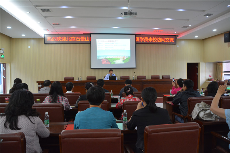 北京石景山区中小学德育干部培训班学员来校访问交流 来源:校办 发布时间:2017-05-09 19:02:14 浏览次数: 次 【字体:小 大】 5月9日上午,在北京教育学院石景山分院党总支书记于志勇的带领下,石景山区中小学德育干部培训班学员来校访问交流。我校副校长张志,校办主任谭伟,学工处主任胡田超予以接待。 培训班学员参观校园后听取了张志作的《让教育温暖而幸福》的专题报告。张志详细介绍了学校的基本概况、办学理念、校风教风学风等,重点介绍了学校德育工作的特色做法,并分享了德育工作者的体会与感悟。 学校的物质文化建设和全员、全面、全程育人的德育模式得到学员们的一致好评。 分享到: 【打印正文】