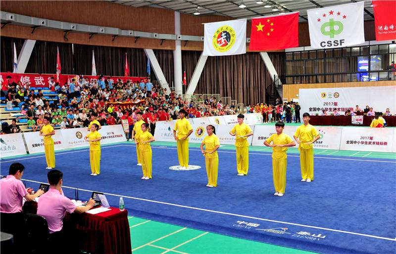 2017年全国中小学生武术锦标赛火热开赛 来源:校办 发布时间:2017-07-11 23:14:40 浏览次数: 次 【字体:小 大】 7月11日,2017年全国中小学生武术锦标赛正火热开赛。来自全国各省市中小学的1100多名武术健儿齐聚我校,共修武德,共磋武艺!南拳、长拳、南刀、刀术、剑术、南棍、枪术、棍术、太极拳、太极剑、自选拳术、单器械、双器械、软器械、对练等多个竞赛项目精彩纷呈。集体项目的恢弘气势,个人项目的高超武艺令所有人连连赞叹少年的德艺双馨和国术的精深奥妙。 分享到: 【打印正文】