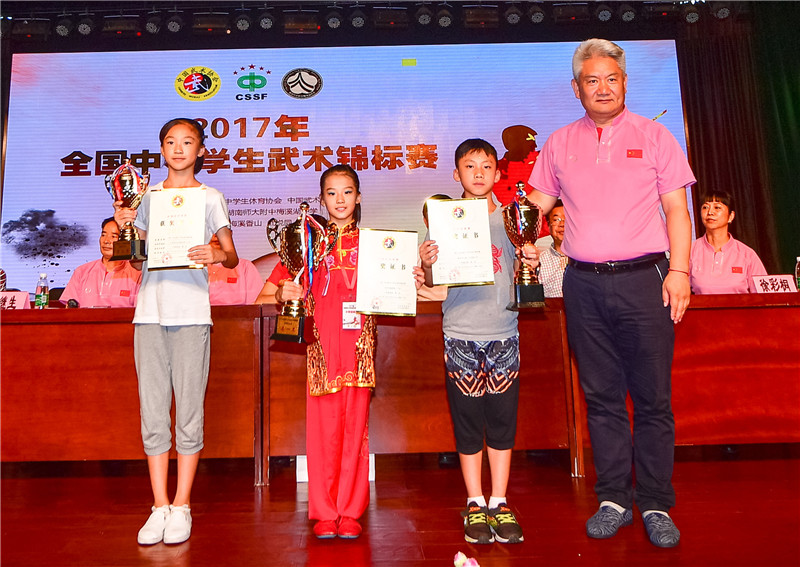 在热烈的掌声中,晏荣贵宣布2017年全国中小学生武术锦标赛圆满闭幕。