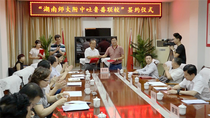 9月22日下午,“湖南师大附中吐鲁番联校”签约挂牌仪式在吐鲁番市实验中学举行。
