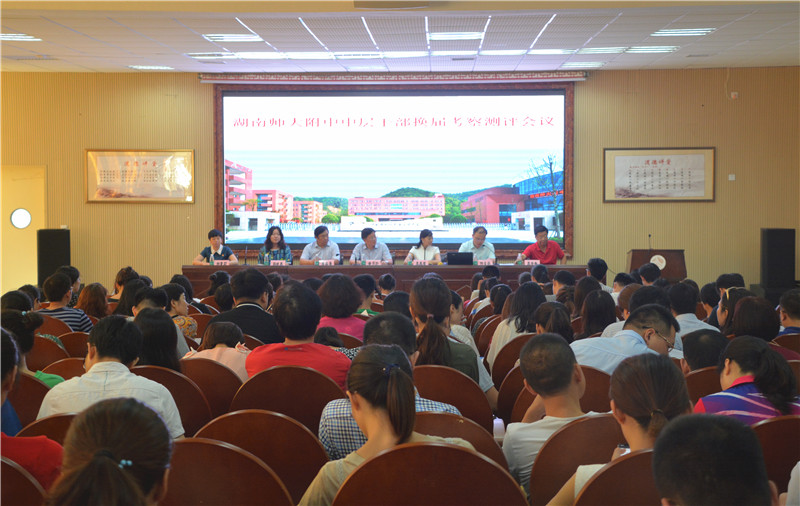 6月28日,湖南师大附中党委书记兼副校长黄月初,党委委员、纪检书记李春莲,校长助理兼湖南师大附中教育集团办公室主任康辛勇,党办主任伏炎安等一行四人来校对外派中层干部进行换届考察测评。考察测评对象为我校校长晏荣贵,副校长张迪平、张志。会议由伏炎安主持。全体教职工参加大会。