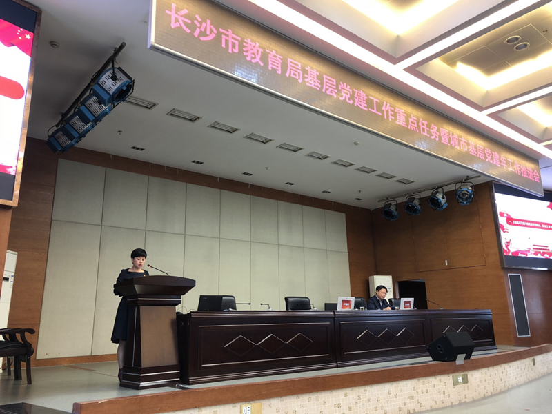 10月18日,长沙市教育局基层党建工作重点任务暨城市基层党建年工作推进会在市考试院六楼召开,会议由长沙市教育局副局长孙传贵主持,市教育局党委书记、局长卢鸿鸣出席此次会议。我校党委书记钟慧莉应邀就支部“五化”建设工作做了典型发言。