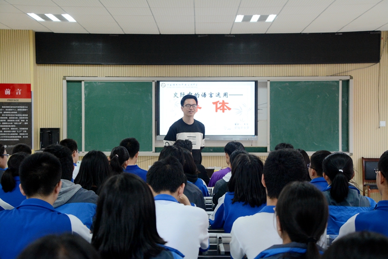 客人们听取了我校语文教师李行执教的公开课《交际中的语言运用——得体》。老师行云流水的精彩授课,学生积极热情的精神风貌给听课教师留下深刻印象。课后的评课议课环节气氛热烈,两校教师就高中语文教学工作进行了深入交流。