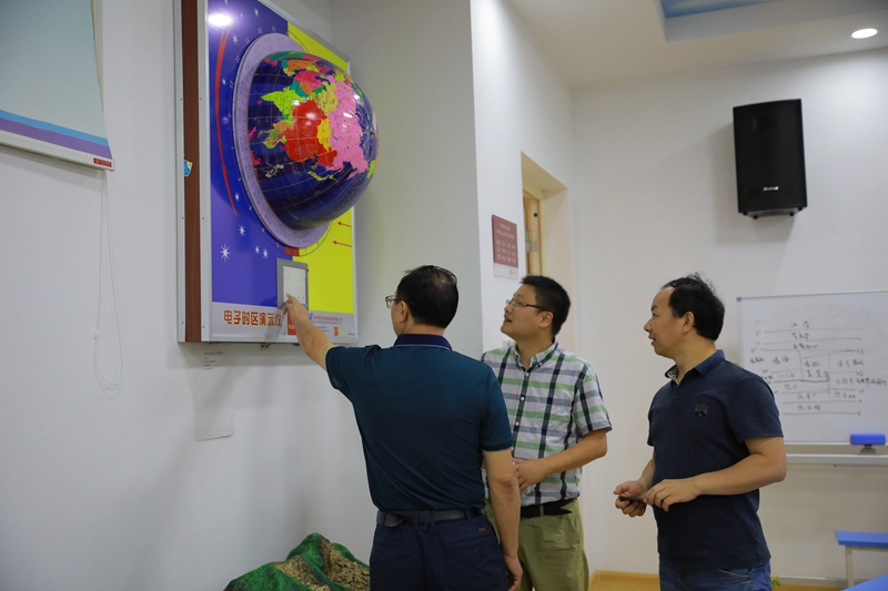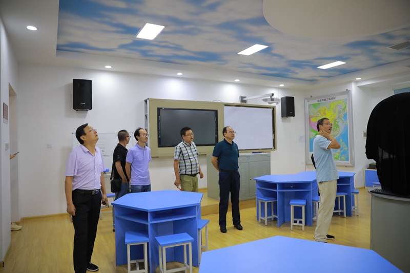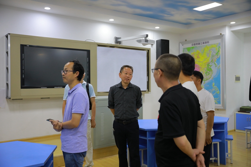 在学校领导的陪同下,客人们参观了校园,重点考察了数字化历史、地理教室,STEM教育基地体验馆,心理咨询室等处,实地了解了学校基本情况,并就教育教学工作与我校领导进行了交流。