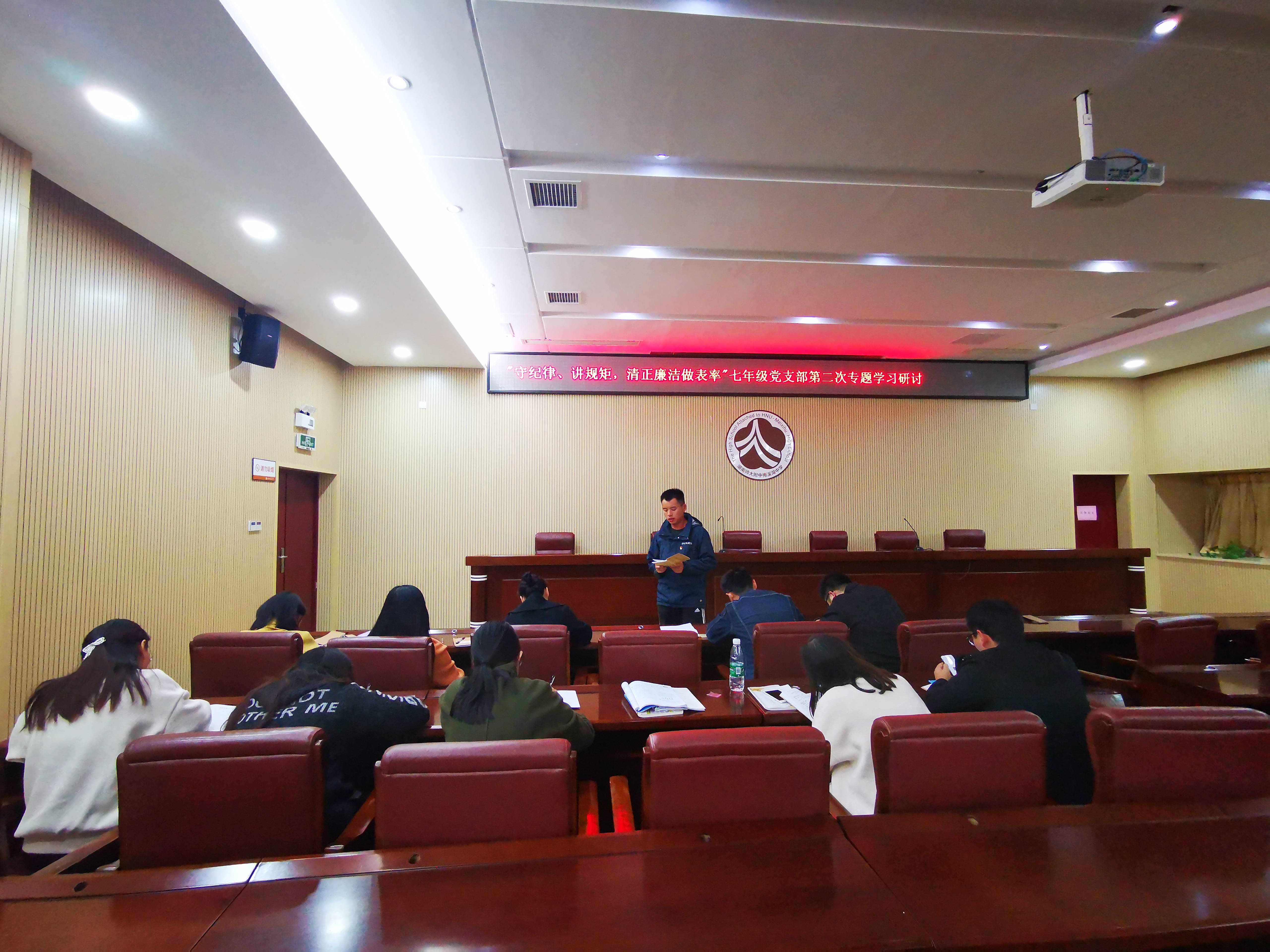 七年级党支部开展“守纪律、讲规矩,清正廉洁做表率”主题教育学习研讨会