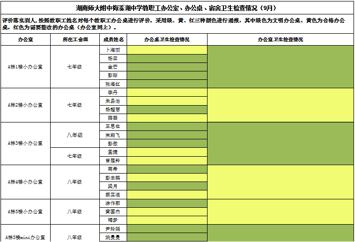 9月文明办公室及办公桌评比结果