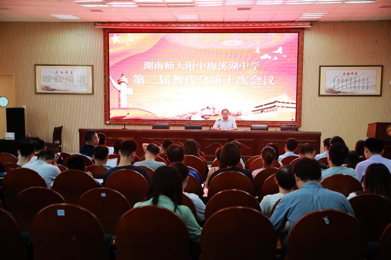 5月13日,我校第二届教代会第十次会议在道德讲堂召开,本次会议主要审议《长沙市师大附中梅溪湖中学职称评审材料考核量化评分表》。校长张迪平,党委书记钟慧莉,副校长兼工会主席胡惠,团委书记罗煦洁,工会副主席王光裕,初一年级组长周涛等6人作为本届教代会的主席团成员出席会议。全体教代会代表和列席代表参加会议。会议由胡惠主持。
