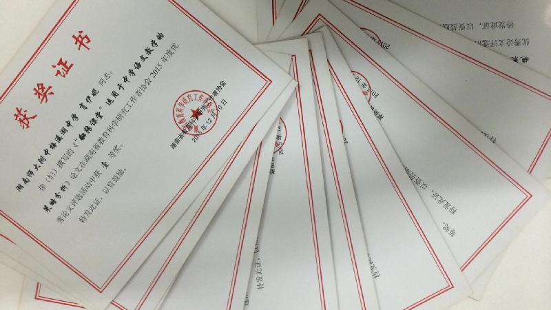 喜报:我校教师在湖南省教育教学工作者协会2015年度优秀论文评比活动中获佳绩