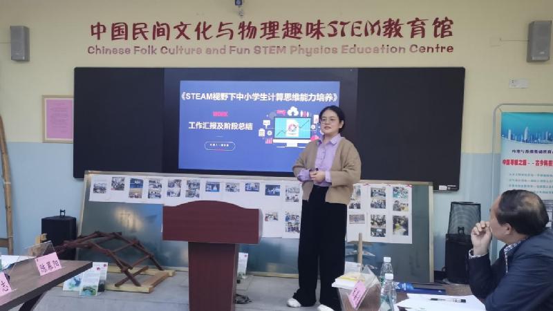 熊婧嫄以“STEM视野下中小学生计算机思维能力培养探索与实践”为主题,汇报其近段时间结合自身工作经历开展多层次符合国情、学情的教学探究;阐述《Flash形状补间动画》《Python自画像》课例展示设计思路、过程材料与目标考察;展示学生自主作品、NOIPCSP-J/S获奖情况;规划下阶段Python语言与人工智能校本课程建设。