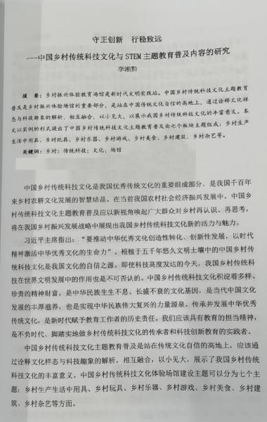 6月6月,城乡统筹发展研究中心(中宣部主管)在北京师范大学举办“文化与乡村振兴”——第六届城市文化发展论坛暨有奖征文活动,我校教师李湘黔撰写的《守正创新 行稳致远---中国乡村传统科技文化与STEM主题教育普及内容的研究》(近1万字)入选论坛征文集。