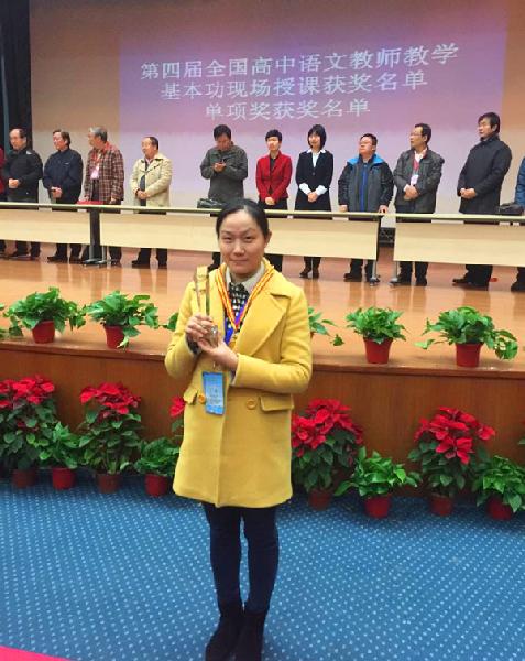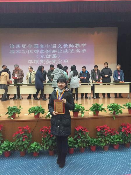 喜报:语文组马晴晴、王静在全国高中语文教师教学基本功展评中摘得桂冠 来源:校办 发布时间:2015-11-26 15:25:29 浏览次数: 次 【字体:小 大】 11月22至26日,第四届全国高中语文教师教学基本功展评暨教学观摩研讨会在江苏苏州举行。我校语文组马晴晴老师作为全省唯一现场赛课参赛代表荣获一等奖!我校语文组王静老师荣获光盘课比赛和论文评比一等奖!特向全校师生报喜! 分享到: 【打印正文】
