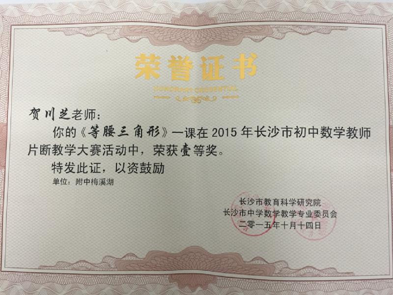 喜报:数学组教师贺川芝荣获市片段教学比赛一等奖第一名 来源:聚彩彩票 发布时间:2015-11-26 15:28:20 浏览次数: 次 【字体:小 大】 近日,长沙市2015年初中数学教师片段教学大赛在湘一芙蓉第二中学隆重举行。数学组教师贺川芝代表我校参赛。在教研组全体老师的帮助和指导下,贺川芝老师凭借扎实的专业功底、自然的教态和良好的课堂调控能力荣获长沙市一等奖第一名,充分展示了我校教师的风采。特向全校师生报喜,向关心和支持比赛的学校领导、同仁表示衷心感谢! 分享到: 【打印正文】