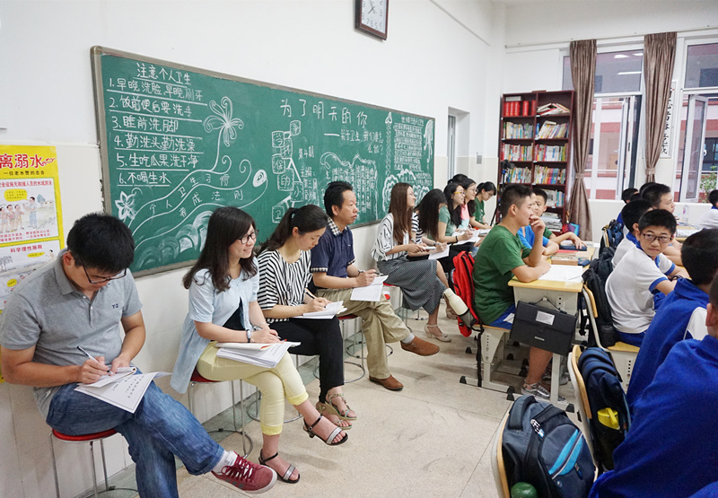 2015年6月,语文、英语组举行了青年教师汇报课活动。校长彭荣宏、副校长莫晖、副校长胡惠、校办主任屈雪辉、教务处主任张迪平、学工处主任张志、保卫处主任胡田超、校办副主任张丽、七年级组长吴菲以及部分老师们齐聚一堂,认真聆听,相互交流。
