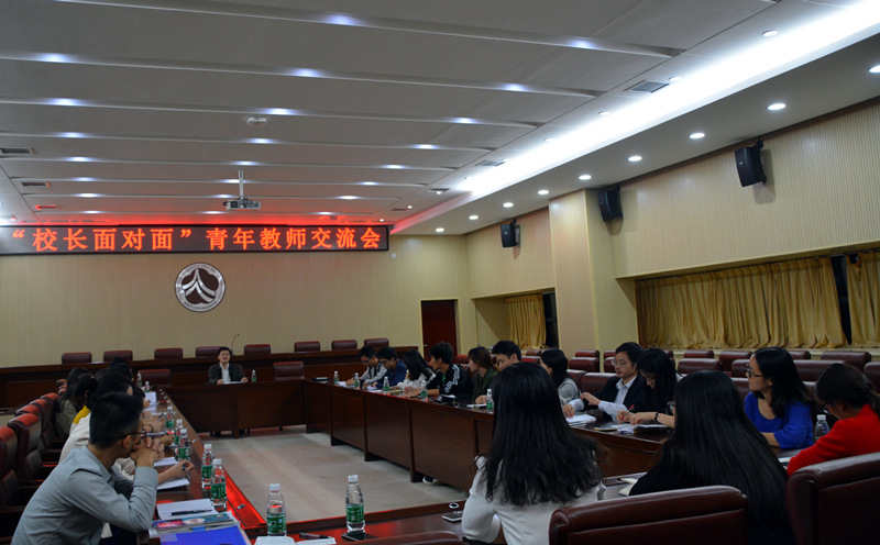 2015年10月21日晚,我校在图书馆一楼会议室举行了“校长面对面”青年教师交流会。校长彭荣宏与27名青年教师欢聚一堂,平等交流对话,倾听青年教师心声,解决实际问题,助力青年教师成长。