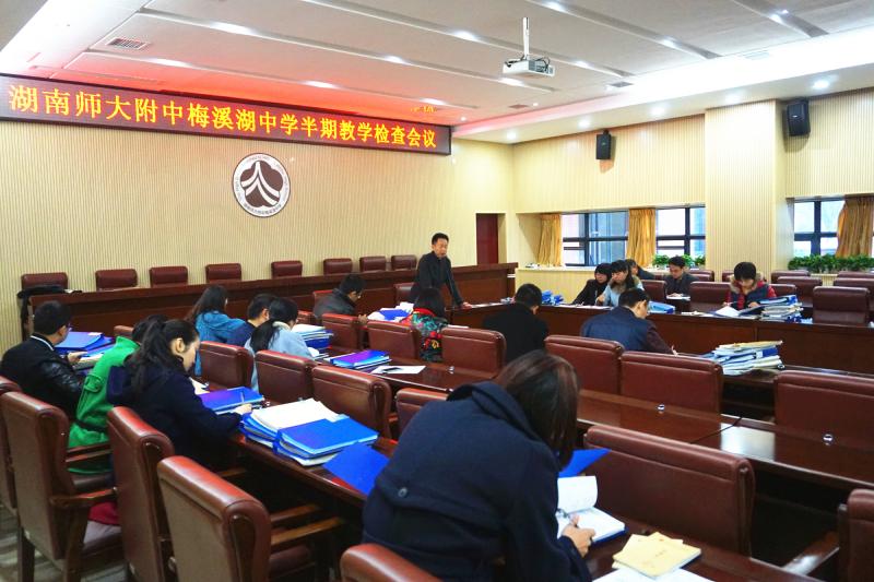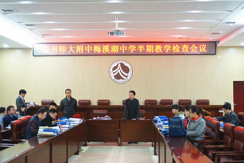 2015年11月20日,半期教学常规检查会议在图书馆一楼会议室举行。副校长张迪平出席会议并讲话。教务处主任梁平、教科室副主任李湘黔、各科教研组长、备课组长参加了会议。