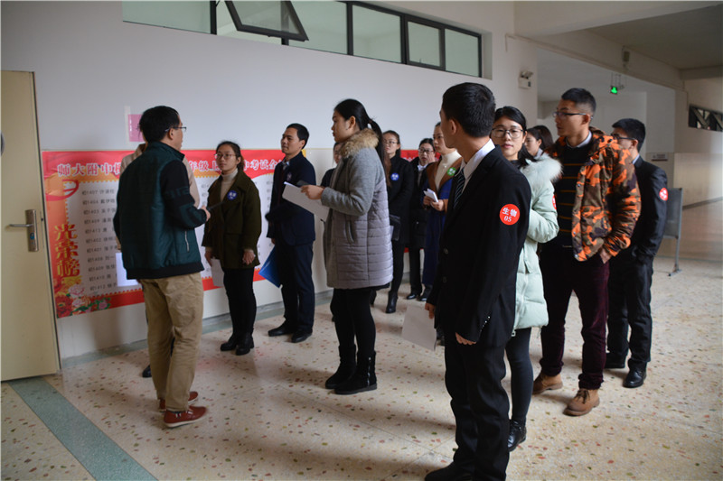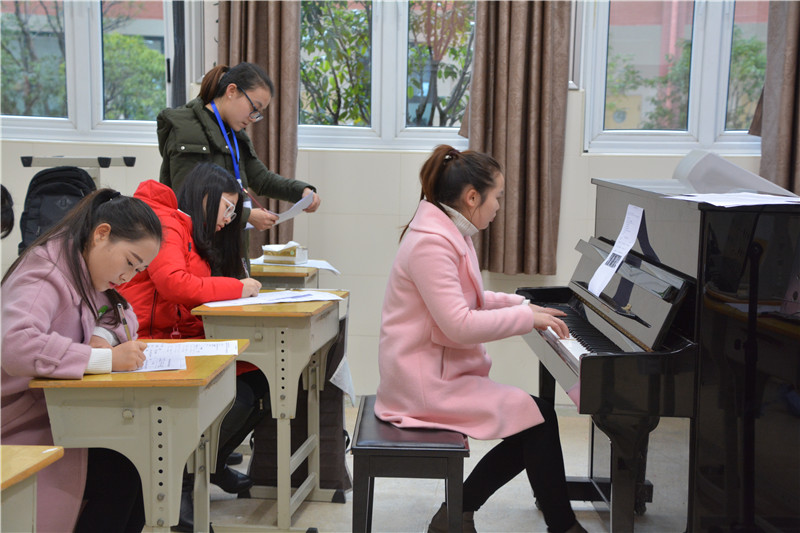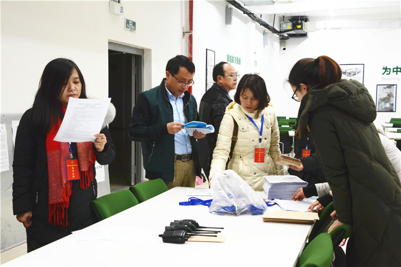 全国中小学教师资格面试实行的是标准化、规范化、信息化考试。考官分配、考生参考顺序、考场分配、试讲课题、面试问题均实施随机抽取,考试过程全程要求录音、录像。我校首次承担教师资格证面试组考工作,面对信息化程度如此之高的全国性考试,学校领导高度重视。校长彭荣宏担任主考,负责考点全面工作。考前,学校制定方案,安装机器,调试设备,准备资料,培训考官和考务人员等等,做好了充分的准备。考试过程中,考务组、设备技术组、候考组、抽题组、备课组、测试组、宣传接待组、保密监控组、安全保卫组九大工作小组通力合作,考官、工作人员认真负责,坚守岗位,确保了考试有序进行。