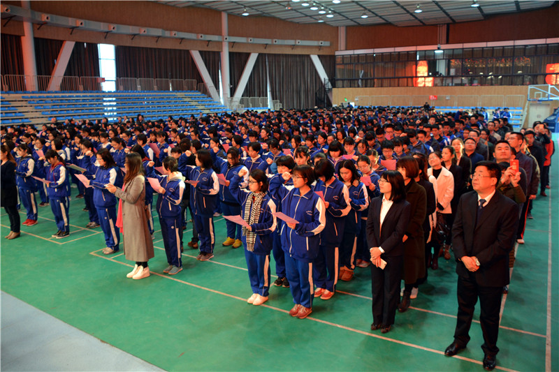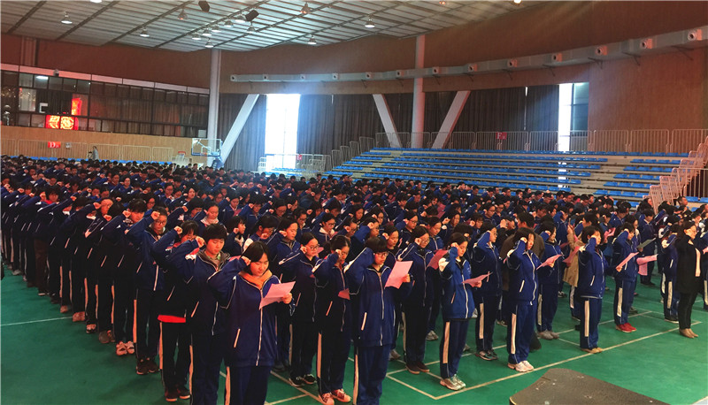最后,全体高三学生高举右拳,进行了庄严的宣誓,嘹亮的口号声表达了高三学生誓创2017高考奇迹的必胜信念。