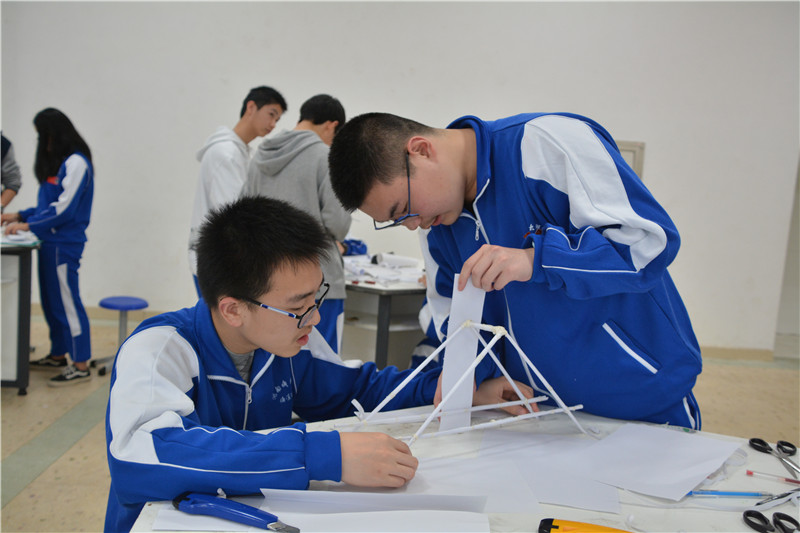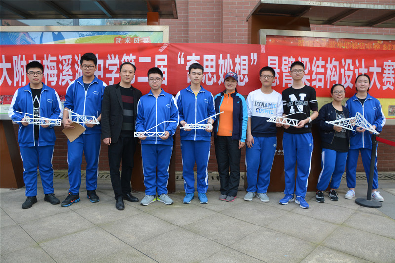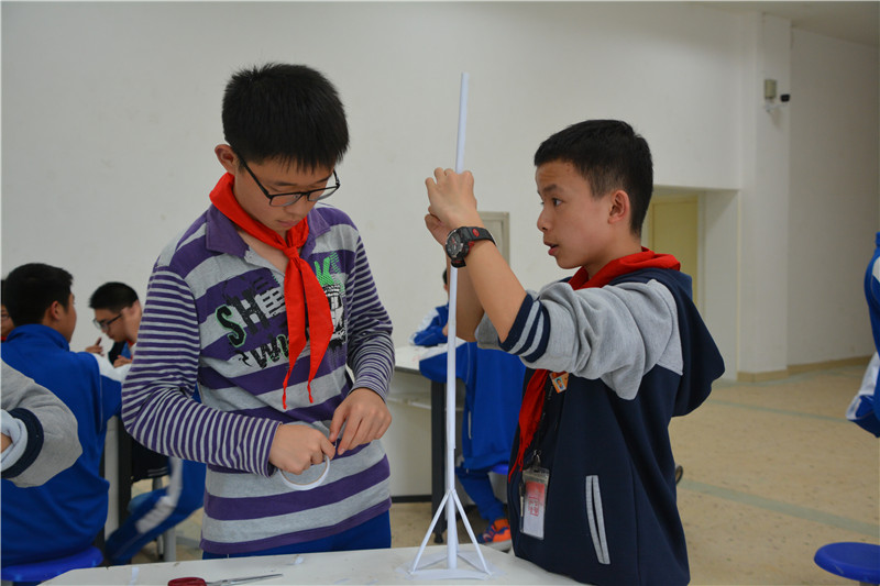 优异成绩的获得,离不开我校对青少年科技创新教育的高度重视和大力支持。学校配齐了通用技术专任教师,确保各年级的通用技术课程开齐开好,积极开展各类综合科技实践活动。比如每年的校园科技节会举办“科技实践作品比赛”,“纸质模型搭高与承重设计大赛”,“悬臂梁结构设计与制作大赛”等等,鼓励学生制作科技小发明,广泛参与科技创新实践活动,有效地培养了学生的创新思维能力和动手能力。