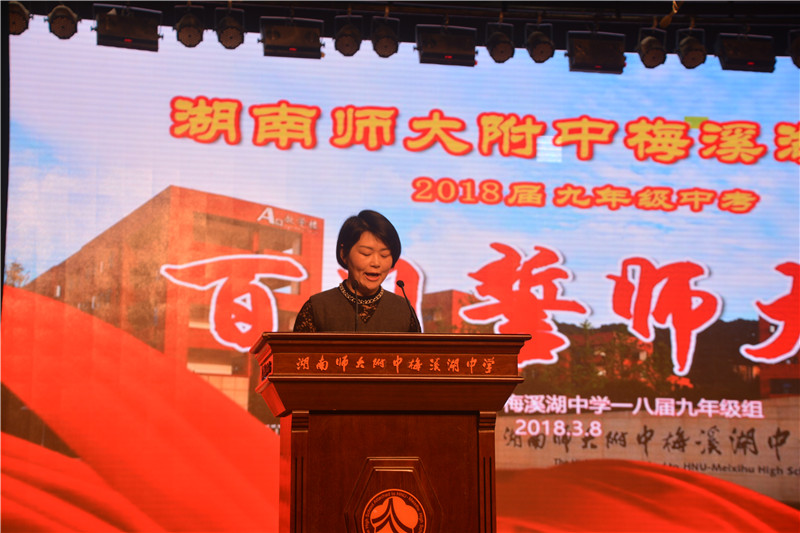 最后,杨庆芬作总结发言。他引用清代袁枚的小诗《苔》:白日不到处,青春恰自来。苔花如米小,也学牡丹开。勉励全体九年级学子即使当下平凡,百日奋斗之后也可像牡丹花一样盛放。“三年砺剑今日策马闯雄关,一朝试锋六月扬眉凯歌旋”, 2018年师梅中考必将再上新台阶,再创新辉煌!