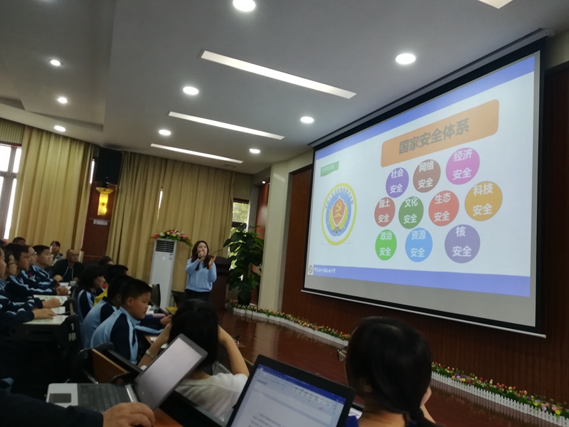 田瑶瑶以一张圆规漫画导入,带大家进入课堂以社会时事话题“长春长生假疫苗事件”为事例,引导学生思考事件给社会带来的影响,使宏观的话题以生动形象的案例走进学生生活。以长沙市听证会的形式开展合作探究,引导学生从立法、执法、企业、公民等角度展开讨论。课堂最后,她带领学生关注当下,思过往,勿忘国耻,师生齐唱国歌再次进行了情感升华,充满正能量。整堂课,老师循序渐进、启发诱导,学生思维敏捷,妙语生花。教学条理清晰,知识点逻辑关系强充分调动了学生的积极性和参与性,让学生成为课堂的主体。课堂结构设计巧妙,连点成线,由线及面,正反对比,形成一个立体的知识空间,使学生对国家安全有了较全面的了解,获得在场专家和老师的一致好评。