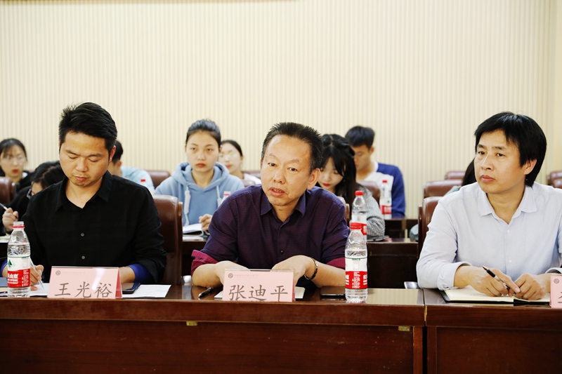 张迪平对检查组的到来表示热烈的欢迎,对实习老师为我校教师队伍注入新鲜血液表示感谢。他高度赞扬了实习老师在我校认真工作和虚心学习的态度,并就我校承接师大实习,深化与师大合作方面与师大领导进行了深入交流。