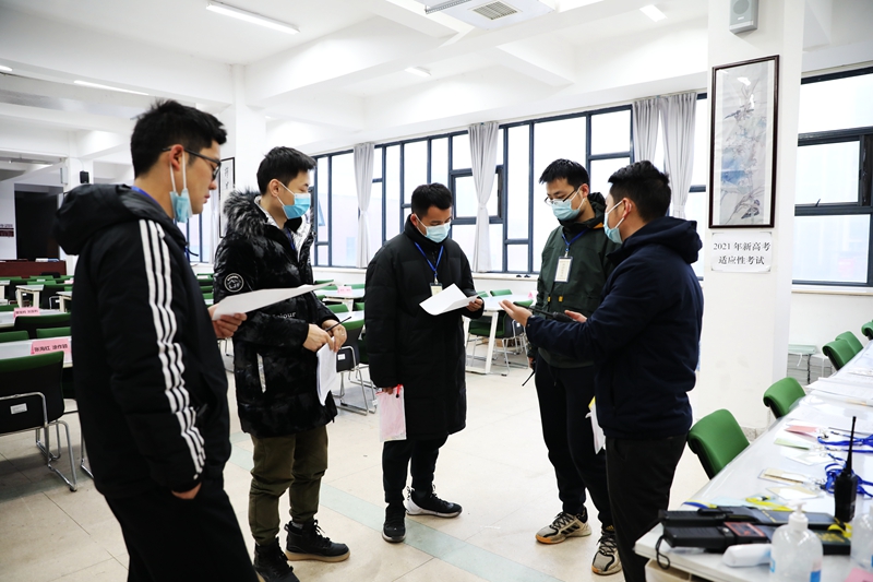 2021年高考,我省将首次实行“3+1+2”模式,分三天进行考试。为了让广大考生和涉考涉招人员提前适应,按照教育部统一部署安排,我省与其他7个高考综合改革试点省(市)于1月23日至25日同步组织普通高校招生适应性考试。我校作为考点之一,顺利完成了组考工作。本考点共设置18个考场,1个备用考室,1个专用隔离考室。372名高三学子参加考试。