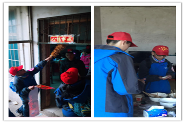 “春暖童心,与爱同行”,关注留守儿童,是最近社会上很关注的事情,这也是校团委对此次寒假社会实践提出的一个重要主题!看,这支小分队行动起来了,还号召自己的姐姐、哥哥一起行动起来了!不仅给同龄的孩子带去了学习用具,还带着食材和留守的孩子一起包饺子,贴春联,你看他们一起多开心啊!我们称这个小分队为“小红帽”分队!