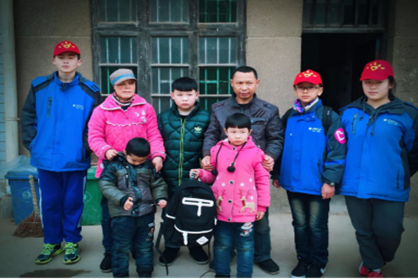 被看望孩童的爸爸妈妈得知我们要去,临时从打工的地方赶回,在我们要走的时候到家,那就来张合影吧!