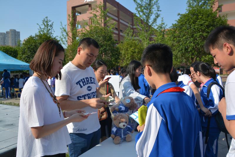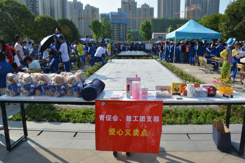 活动中,我校青年教师促进会、教工团支部以及高一、初一年级的各班同学为爱心义卖摊位各出其招,装点各具特色。其中义卖物品也很有创意,有老师捐赠的附中本部100周年校庆附中熊,也有同学们的书画作品等。还有同学现场演奏乐器进行义演。校园内四处传来各种吆喝声:“看一看,瞧一瞧!”,“书籍批发啊!”,“走过路过,莫错过!”,“同学你要买吗?献一份爱心吧!”同学们摇身一变,俨然成了颇有经验的售货员和推销员。
