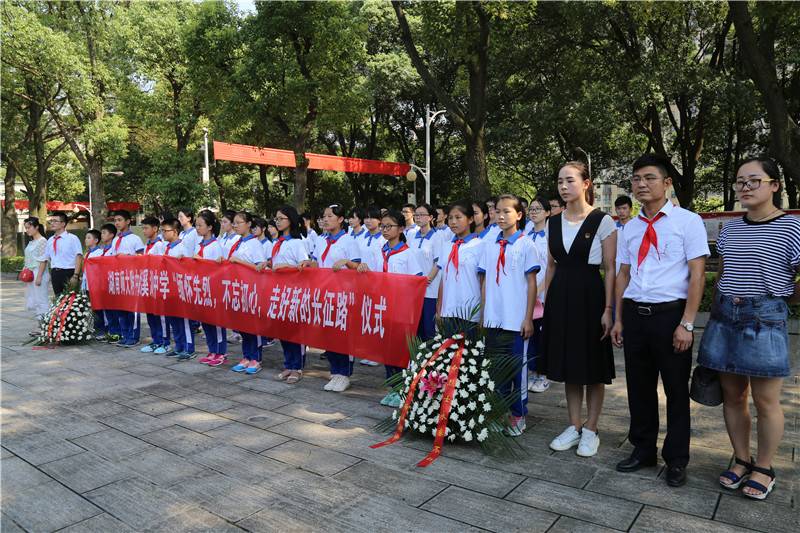 9月2日,我校纪念红军长征80周年暨9.3抗战胜利“缅怀先烈不忘初心走好新的长征路仪式在湖南革命陵园举行学工处主任胡田超,团委书记罗煦洁,少先队辅导员郭金石,党员教师代表,青年业余党校学员及部分少先队员代表参加仪式。仪式郭金石主持。