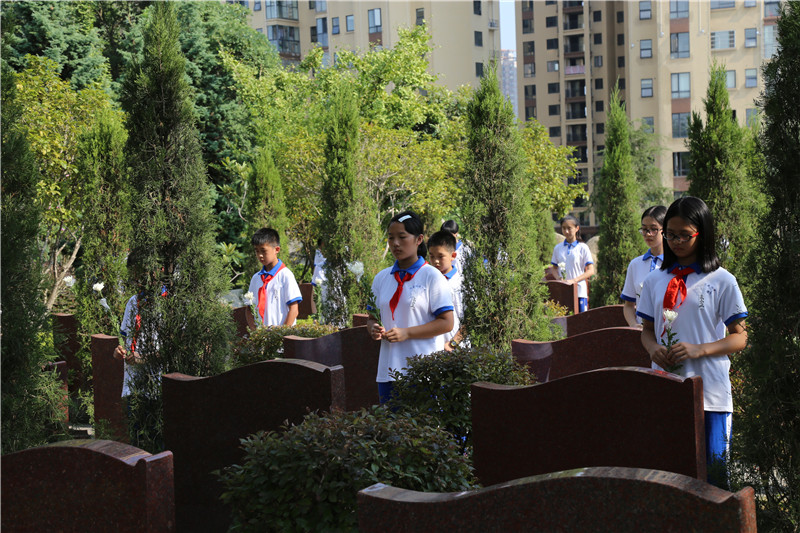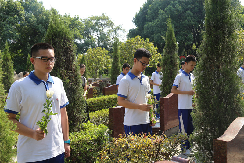 随后,所有师生向烈士默哀3分钟,并献上了洁净、淡雅的白菊,清扫了烈士墓碑以此表达他们对烈士崇高的敬意。
