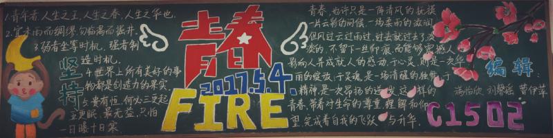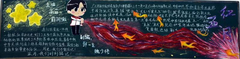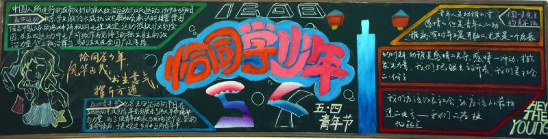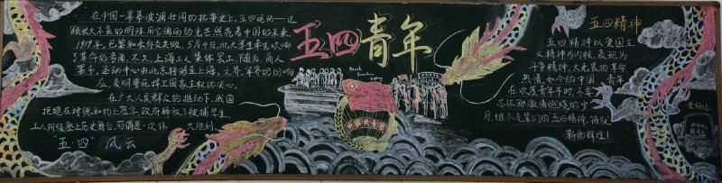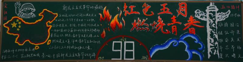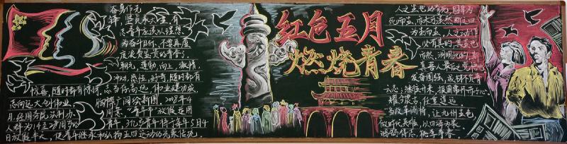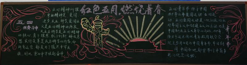 五月的春风情深意暖,五月的花海流溢飘香,和着春潮,伴着夏韵,在花海灿烂夺目的季节里,我们迎来了“五四”青年节。我校在举行了"红色五月 燃烧青春"以及"以青春的名义 弘扬五四精神"的黑板报评比活动。