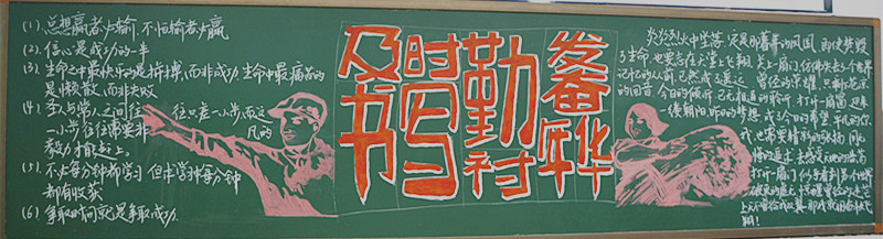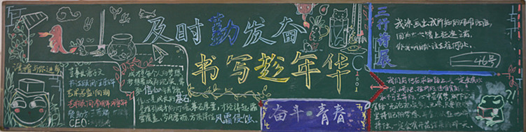 作为跨世纪的少年,我们用黑板报书写学习的乐趣,用黑板报为新时代的文明代言。为此,我校展开了关于“及时勤发奋,书写趁年华”和“习雷锋之道,树民族之魂”为主题的黑板报评比活动。本次参加的年级有:初一、初二、高一、高二。每一个班级都积极参与,让学生各尽其能,发挥所长,大放异彩,运用自己的聪明才智创办本班的黑板报。制作的黑板报主题突出,内容丰富,图文并茂,版面生动活泼,不但锻炼了学生的动手能力,合作能力,也为本班增添一道亮丽的风景线,使师梅散发出青春阳光的魅力。