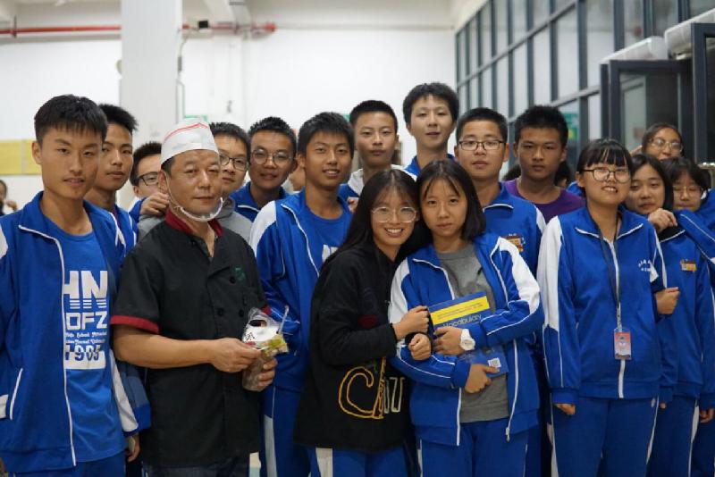 还有的班级为学校保安、保洁、食堂的叔叔阿姨们送去温暖与祝福。这些叔叔阿姨们即时在佳节也不能回家团圆,而同学们的热情让他们感动不已。叔叔阿姨的脸上浮现出灿烂喜悦的笑容。同学们也从中意识到了感恩回报的重要性。