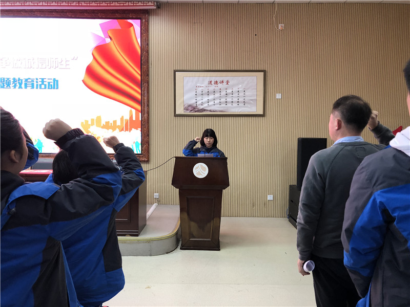 活动开始,同学们观看了诚信教育短片,听取了校团委副书记熊方熙分享的诚信心得和诚信故事。紧接着在校学生会副主席黄舒洋的带领下,全体与会人员集体宣誓,许下了自己的诚信诺言。