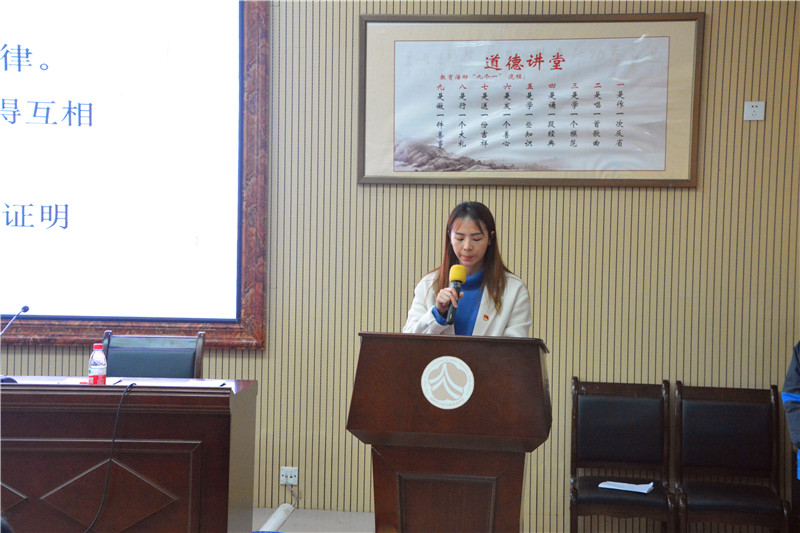最后,钟慧莉作了总结讲话。她在讲话中引用习近平总书记在“学习思想政治理论课教师座谈会”上的讲话,勉励同学们在“拔节孕穗期”,珍惜难得的学习机会,严格要求自己,时刻发挥先锋模范作用,树立远大理想,团结奋斗,顽强拼搏,务实作风,努力成为成为社会主义建设者和接班人,为中国梦的早日实现凝聚青春力量。