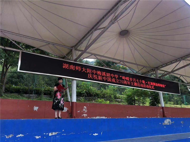 学工处主任王超在仪式上宣布了系列庆祝活动的具体安排和要求。接下来一个多月时间里,我校将举行“砥砺奋进七十载,民族复兴新征程”新中国70年展、“迎70华诞,祝福送给您”收看庆祝新中国成立70周年大会活动实况、“宣誓践承诺,爱国植心中”少先队员宣誓、“礼赞中国,放歌师梅”庆祝新中国成立70周年合唱比赛、“我和我的祖国”主题征文比赛、“风雨七十载,砥砺师梅人”主题班团队会展示、“模范先锋会,指引我前行”先锋模范故事宣讲活动、“中国新面貌,师生齐描绘”大型书画摄影大赛展览活动等一系列活动。