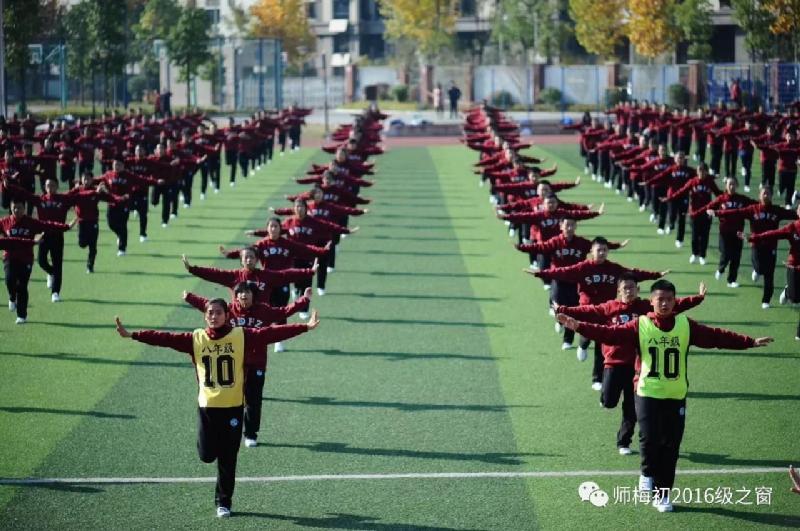 提起师梅的大课间,人人都是赞不绝口,纷纷竖起大拇指,由衷赞叹一句:“真棒!”今年,这个接力棒来到了我们初2016级手中,我们每个人都卯足了劲儿,一定要全力以赴,续写师梅的精彩。
