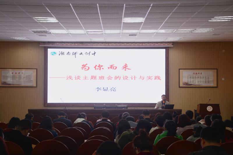 本次活动以班主任主题班会经验交流为主题,并邀请了湖南师大附中教育集团班主任名师工作室名师李显亮来校讲座。李显亮以《为你而来-浅谈主题班会的设计与实践》为主题,与大家分享了他在主题班会设计上的宝贵经验和有效做法,此外,他还为大家提供了不少可供借鉴的优秀案例,引导班主任们要贴近学生生活、根据学生学段特点有针对性和实效性地组织班会,重在与学生进行情感沟通,参与引导学生进行情绪体验,从而达到组织班会的目的。短短一小时的讲座,让每一位听众受益匪浅、感慨良多。 最后,张志对此次活动进行了总结,他希望全校班主任不断提升对主题班会育人作用的理解,以学生发展为本,关注学生心灵成长,加强与学生的交流沟通,进一步提高班主任工作专业能力,积极探索班会组织的新思路和新形式,让主题班会发挥出更大的教育实效。活动在热烈的掌声中圆满结束,大家纷纷表示期待下一次相聚。