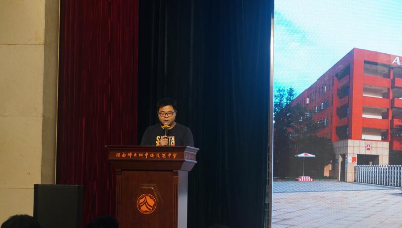 接着由获奖学生代表G1706班罗文辰发表获奖感言。他认为世上无难事,只怕有心人。一个人只有不忘初心,做任何事情都用心,都集中注意力,在正确的时间做正确的事情,才能继续前进。