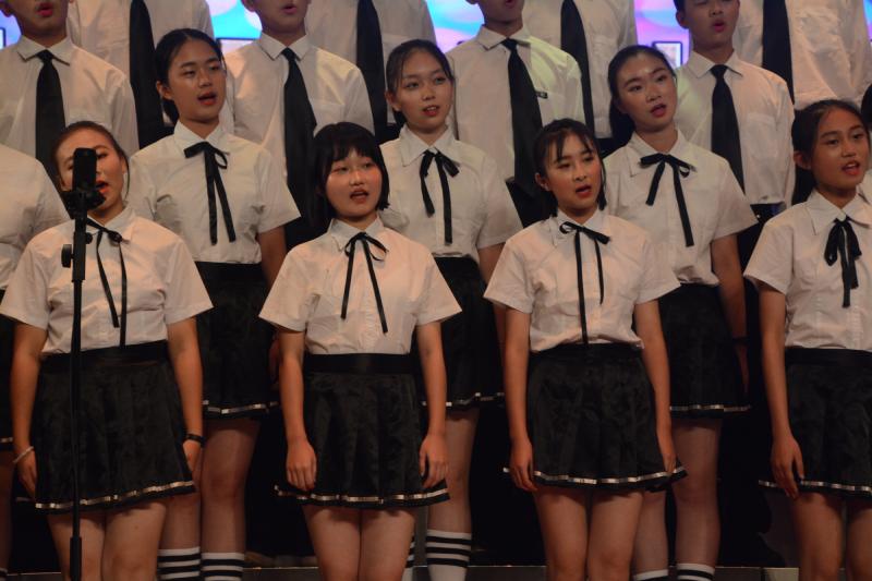 本次合唱比赛是学生们一展歌喉的好机会。由杨萍老师把关,龙松青等四位专业艺术老师担任评委,在1808班的《Come To The Music》音乐声中正式拉开序幕,全程持续约一个半小时。期间登场的曲目有磅礴大气的爱国歌曲《国家》、《祖国不会忘记你》、《我爱你,中国》,有旋律优美的民族曲目《贝加尔湖畔》、《四季的问候》,还有广为传颂的外国歌曲《You Rise Me Up》,当然也少不了流行元素:深情悠远的《大鱼》。风格各异,别具特色的歌曲全方位展现了同学们的精神风貌和青春活力。比赛过程中,同学们的精彩表演掀起了一浪又一浪高潮,整个体艺馆不时传来响亮的掌声,沉浸在浓浓的欢乐氛围里。