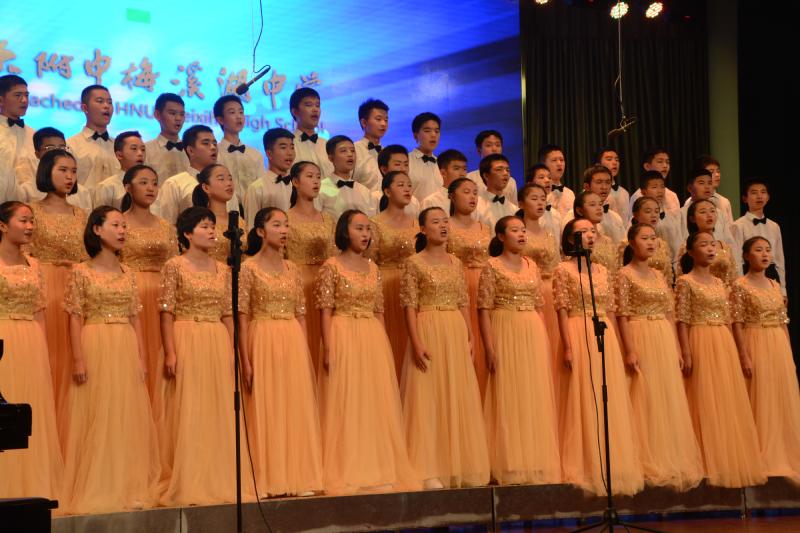 9月25日下午,聚彩彩票高一年级合唱比赛在校体艺馆三楼隆重举行。校长晏荣贵、党委书记钟慧莉,副校长兼工会主席胡惠、副校长张志以及学校全体中层干部都亲临现场观看比赛。