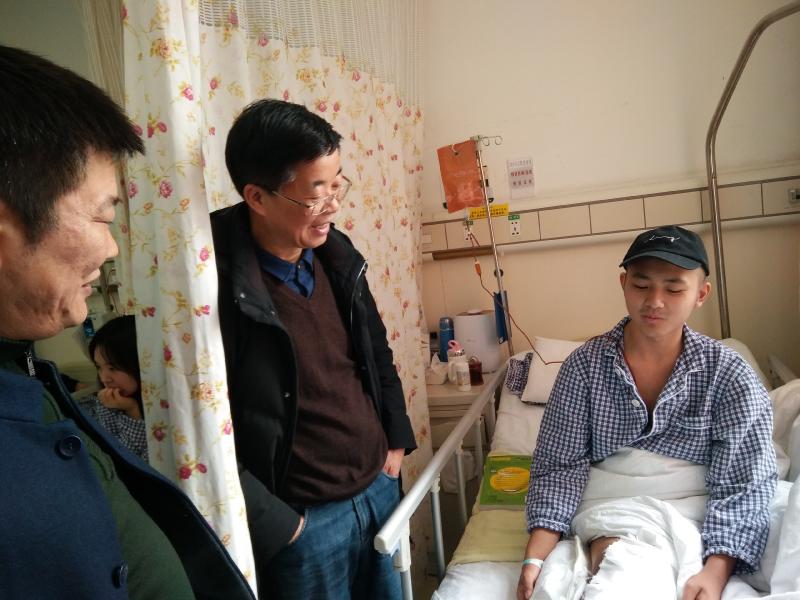 晏荣贵亲切地走到病床前,低身轻声地向刘文骏询问他的病情,并鼓励他要勇敢起来,有学校、老师和同学们做坚强后盾,现代医学技术这么发展,很快就能够战胜病魔顺利康复的。晏荣贵对刘文骏的父母说:“孩子生病了,家长是最着急的,但是有学校师生和家长一起分担,一切都会好起来的。”随即,晏校长向家属转交了全校师生募集的首批爱心款六万元。