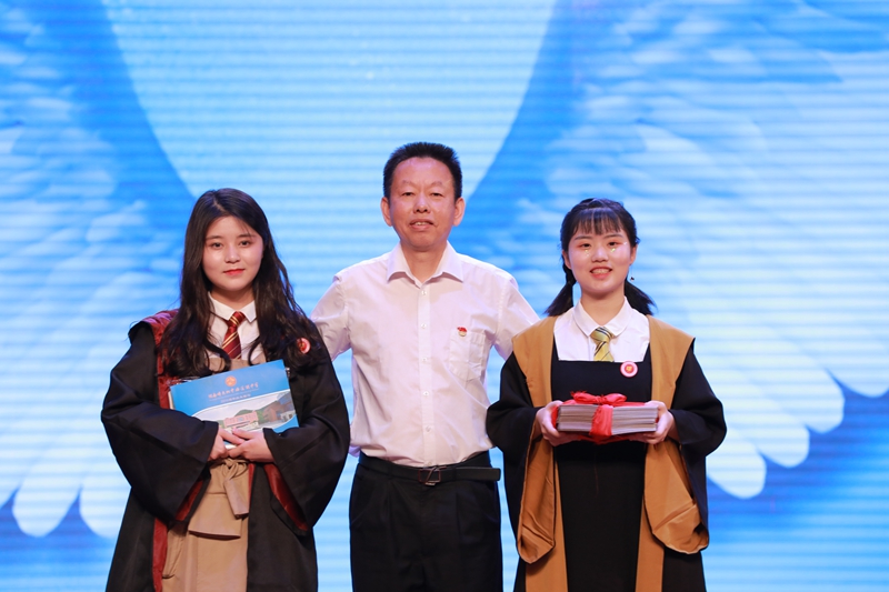 副校长张迪平(主持行政工作)为孩子们送上成年寄语。他首先祝贺孩子们圆满完成高中学业,正式步入成年人行列。他回忆起三年来的点滴时光,讲到一幕幕共同经历的过往,和大家一起沉浸在那段令人难以忘怀的岁月中。校长的拳拳之情,殷殷之教,感动了在场的所有人,热烈的掌声经久不息。伴着清越悠扬的旋律,张迪平为高三毕业生颁发了毕业证书。