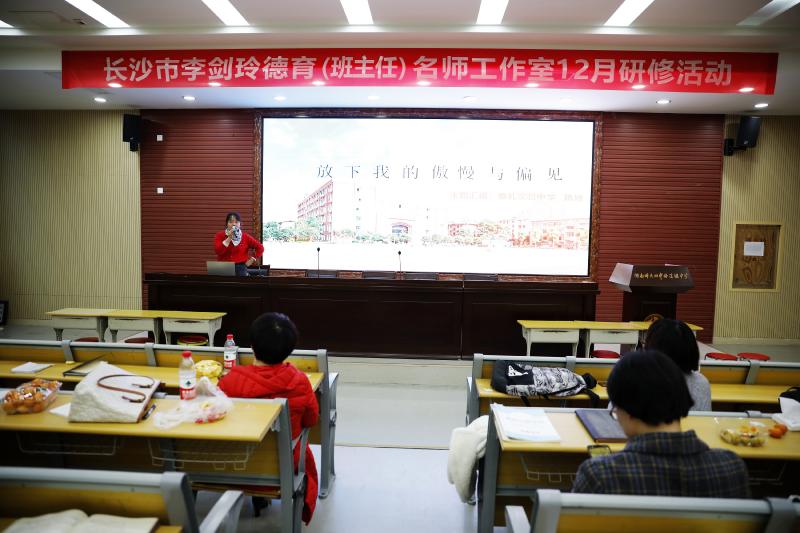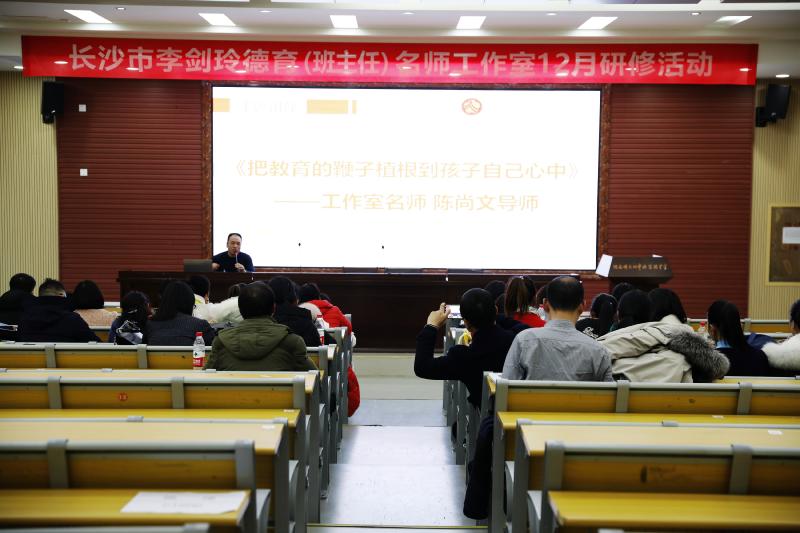 12月8日下午,长沙市李剑玲德育(班主任)名师工作室12月研修活动在我校乐善讲堂顺利举行。市德育名师工作室全体成员、我校副校长张志、学工处主任王超,我校全体班主任等人参与了此次活动。会议由工作室学员长郡双语教师谈刚主持。
