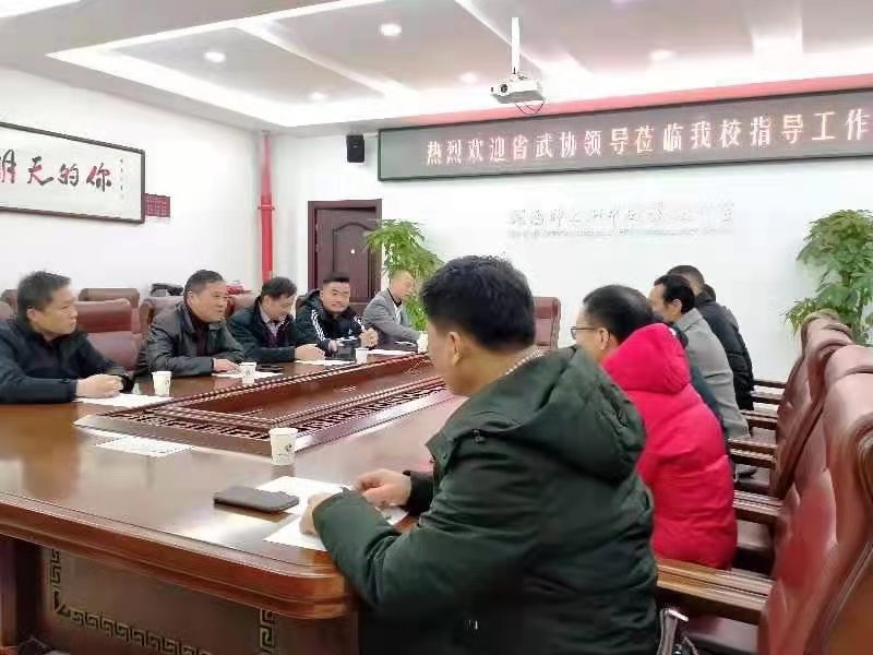 2月3日,湖南省体育局竞技体育与科技处处长、湖南省武术协会主席罗器宇,副主席郝钢,湖南省武术协会领队、秘书长游亮东,宣传部部长范如虹,湖南省体育运动学校校长肖德强一行五人来校调研和指导工作。长沙市武术协会主席何京伟,副主席汪国义,秘书长李坚全程陪同。我校副校长陈益,长沙市武术协会副主席、我校副校长张志热情接待。