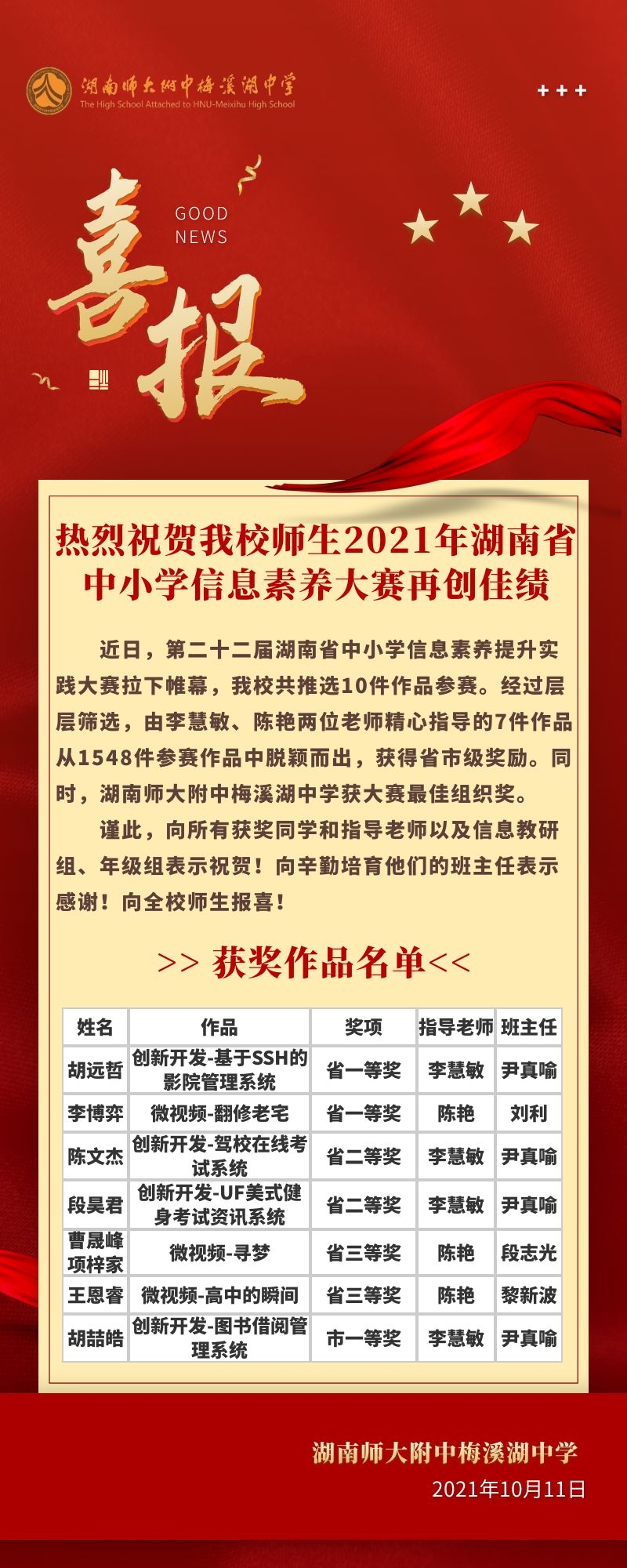 喜报:我校师生在第二十二届湖南省中小学信息素养提升实践大赛中喜获佳绩