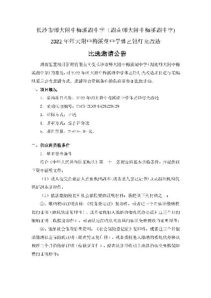 长沙市师大附中梅溪湖中学(聚彩彩票) 2022年师大附中梅溪湖中学体艺馆灯光改造 比选邀请公告 来源:总务处 发布时间:2022-07-11 12:06:14 浏览次数: 次 【字体:小 大】 分享到: 【打印正文】